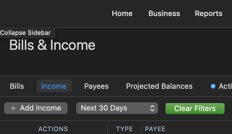 Go to the Bills & Income tab.