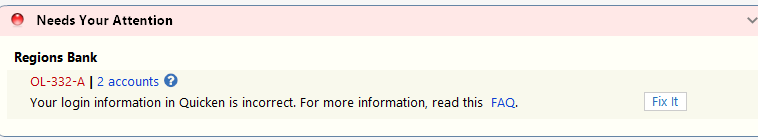 The FAQ about OL-332 talks about invalid userid and/or password. We know that downloading transactions works normally … so, could it be that Regions Bank does not support Direct Connect emails?