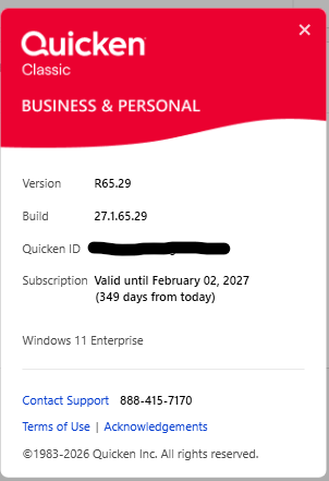 Now running Quicken Windows Subscription, Business & Personal
