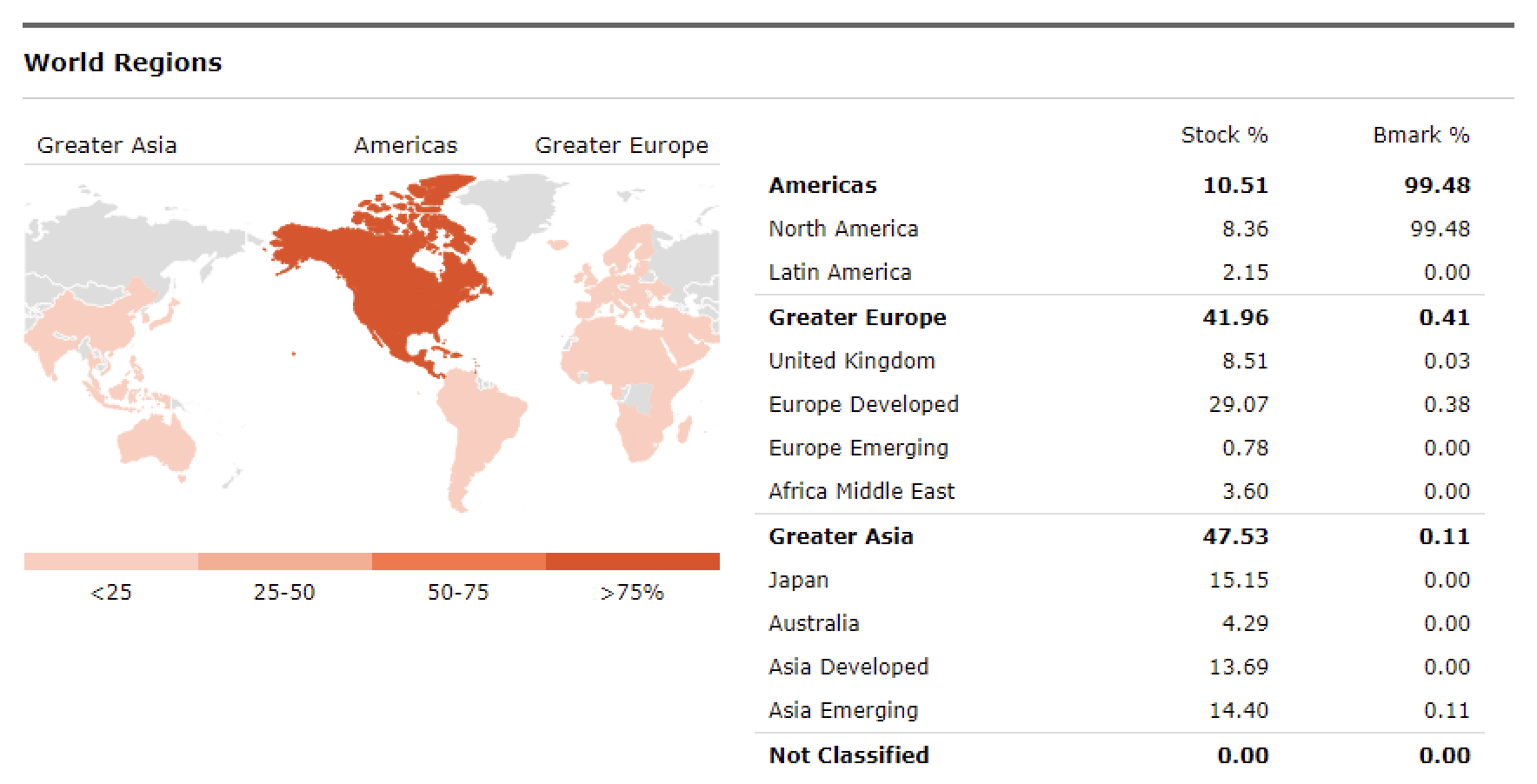 Another issue with Portfolio X-Ray is the "World Regions" diagram. It is fixed as shown even when assets are filtered to a 90% foreign allocation.