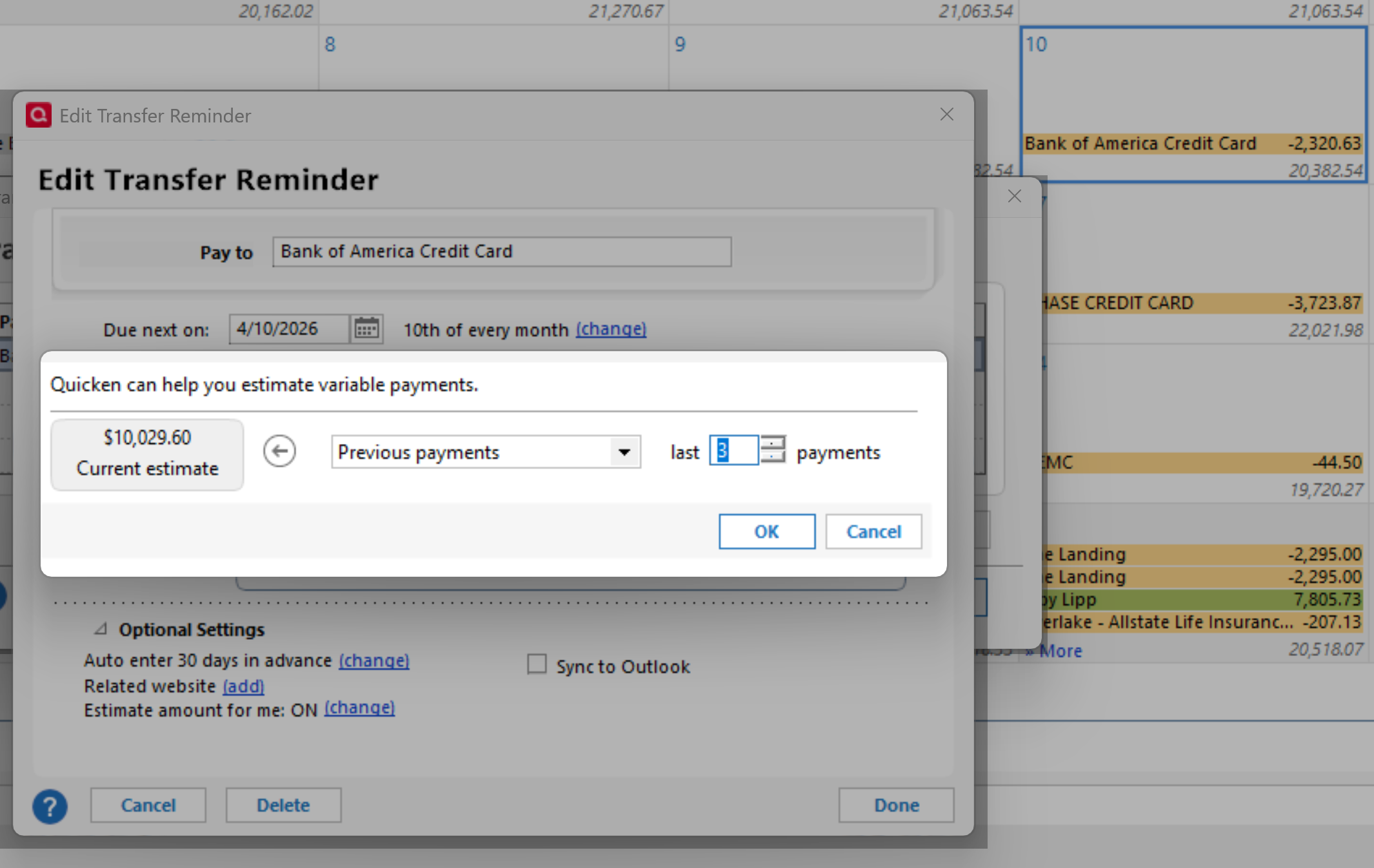 Quicken Classic user. My monthly bills are not adjusting, even though they are set up to be adjusted based on the previous 3 months' payments. Always the same $ amount every month. This has been going on forever, even though all my settings are correct. I've even deleted the reminder and entered a new one, and it never adjusts.