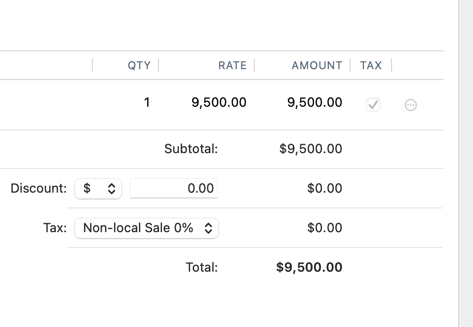 - Change the tax rate on the invoice to None.