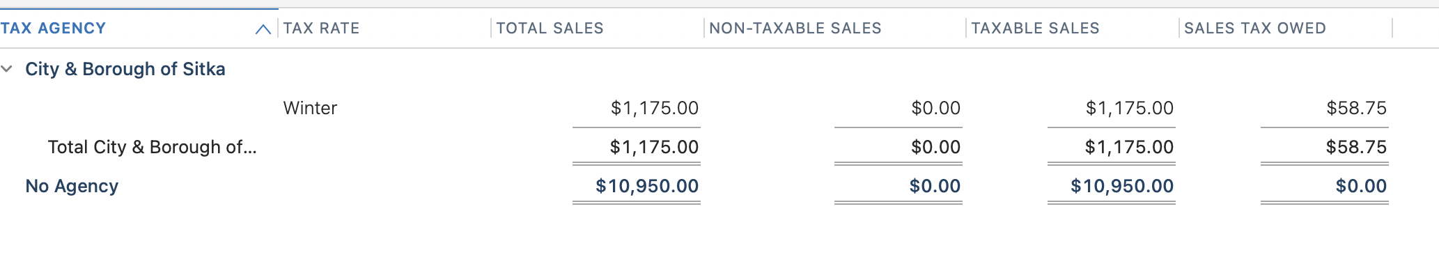 If you need to see the information grouped by agency in the meantime, the only available workaround would be to assign a tax rate greater than 0%. Additionally, you may consider using other business reports to review your sales data, such as the Business Accounts Receivable Aging report, which groups sales by customer.