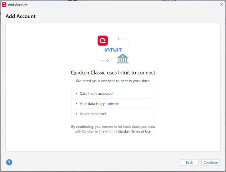 When i open the third-party approval in the bofa security center it reads that I have an active third party connection with quicken