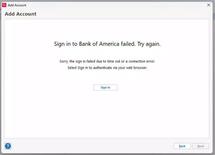 I have gotten the message that I need to reauthorize my BOA accounts for the past 2 days. When I try, I get an error message on signing in. My login has not changed. I am able to log in on my mobile app and using Edge or Safari. Any idea when the connectivity for Quicken may be fixed? Thank you.