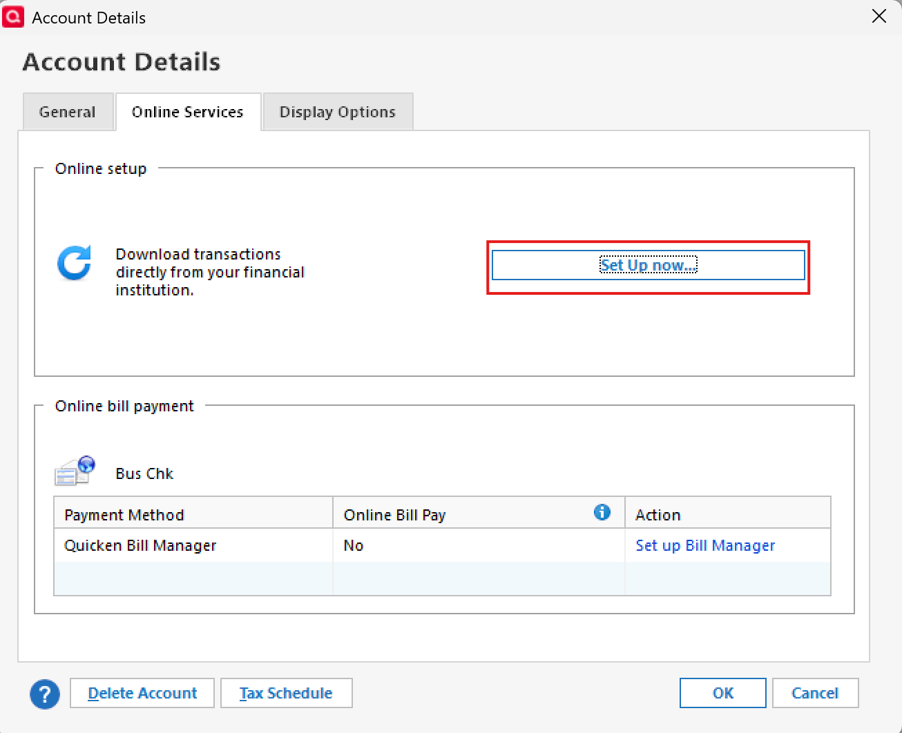 - Online Services > Set Up Now… or
