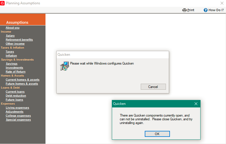 - Uninstall Quicken using Revo uninstaller. Run 'QCleanUI' for good measure.