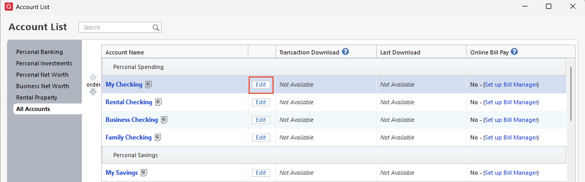 - Click Edit next to the affected account(s).