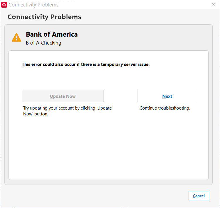 I'm hoping not to have to perform yet another de/reactivate + reauthorize on my B of A accounts. Does anyone have some insight on what's going on here?