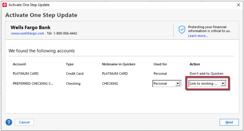 - When the list of found accounts appears, make sure to select Link to connect them to your existing accounts (do not add duplicates).