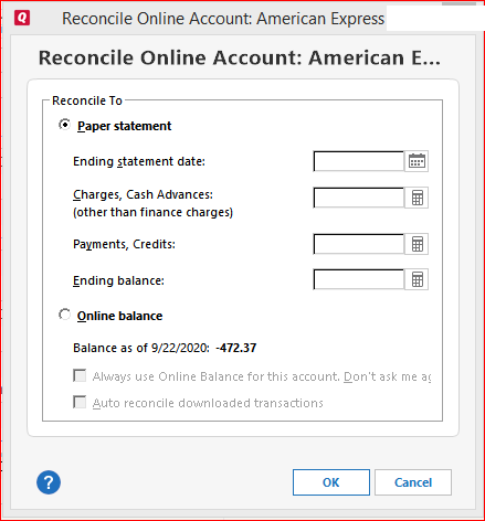 All that Reconcile really needs are the Ending statement date and the Ending balance.