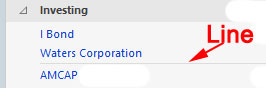 Quicken Windows Deluxe (current version) places new Investing accounts above or below a faint line in the left Accounts panel. How to insure a new account goes below the line or to move existing above the line accounts to below the line