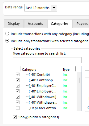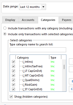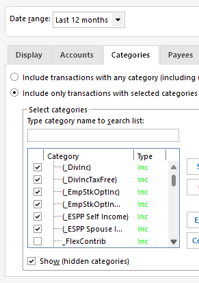 Numerous other categories are selected including some built-in categories and also randomly some that've I've created over the years.