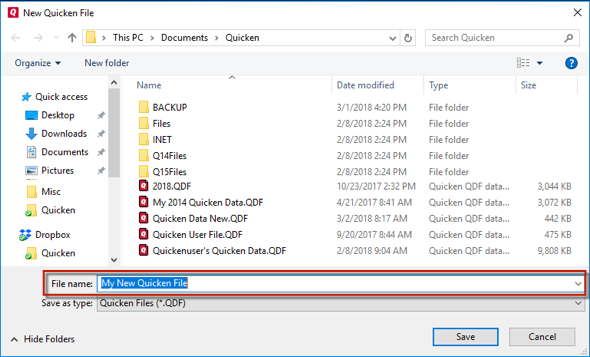 * ? < > | " : \ / - Also, don’t add the .qdf extension—Quicken will add it automatically.