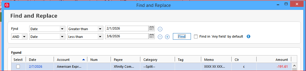 Also see Find and Replace (quicken.com)