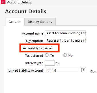 What account type do you see for the account? You can check that by going to Tools>Account List and clicking the Edit button next to the account. The Account type will be visible on the General tab, near the upper left.