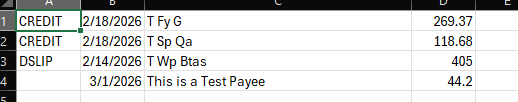 Then I changed the dates and added the T renaming rule and I added a new transaction to import. This is the original CSV file that I converted to QFX and imported.