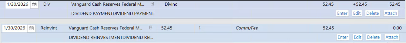 I have a similar problem with Vanguard brokerage. In January 2026 I had a double entry for my brokerage account. I can see it in the history. However, I can no longer view detailed information as shown earlier in this thread. How do I get back to the view I used to have showing the individual reinvest, div, etc. so I can delete the duplication?