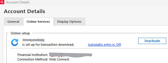 Running Quicken Windows Subscription Classic Deluxe on Win 11. Was happily using "Web Connect" to download Bank of America account data until B of A said they no longer supported the file format. So I looked at the accounts in Quicken and noticed they were set up for "Web Connect." I deactivated that then went through the process of authorizing Intuit to connect directly with B of A. Worked fine for my checking and savings accounts, but hit a snag when I tried to connect my credit card account. In the account editing window in Quicken, the account is designated as set up for Web Connect, but there is no option to deactivate it.