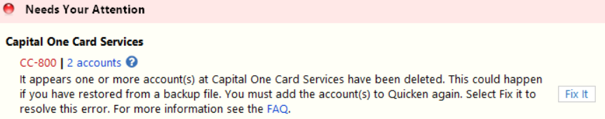 Capital One will not update on Quicken unless I take the extra step of going to my Capital One account online and signing in at the same time. Never had this issue before, but this has been happening since mid-February.