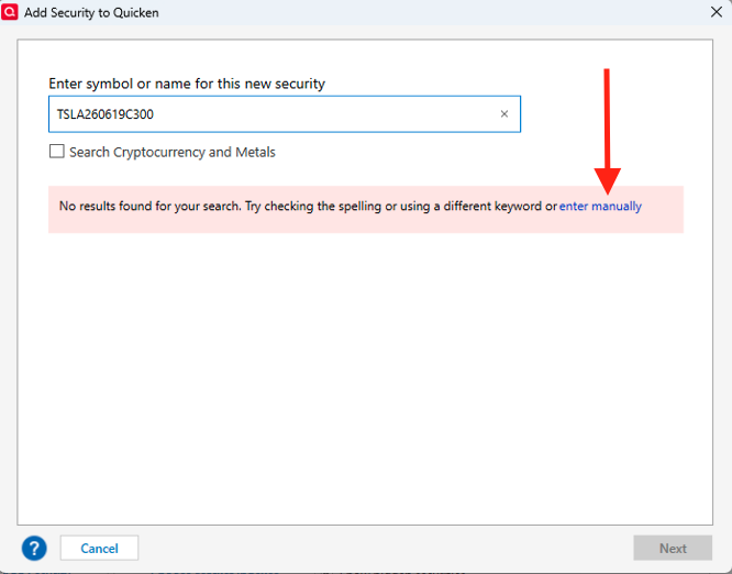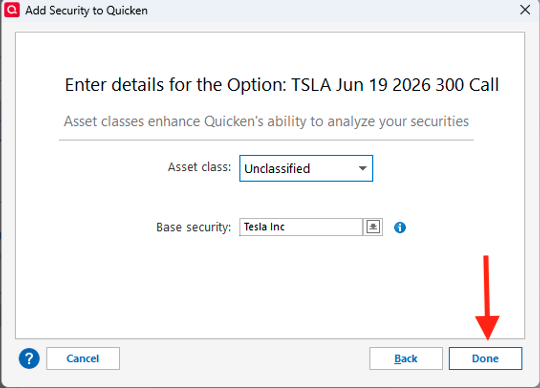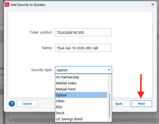 Interestingly, the Tesla option in your example above is how Quicken recommends listing option contract numbers? Also, I think you may have answered the burning question inadvertently above as well. "For Stock Options, prices should be updated