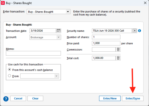 - Keep in mind that Quicken tracks the total contract cost, not the cost per share.