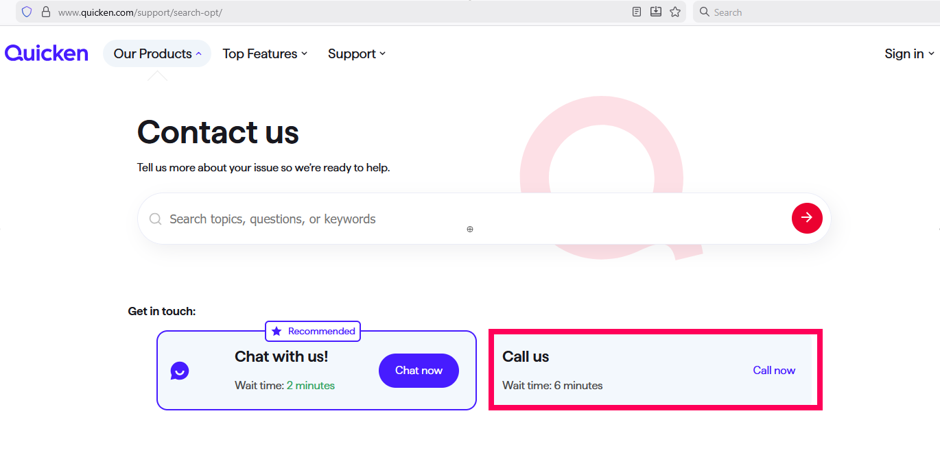 Quicken does make it slightly difficult to find that phone number - I'm sure they prefer "chat" - but in my opinion a "chat" channel for helping people with technical issues just has never proven satisfactory. I'm guessing that screen sharing isn't even an option under chat. So for future reference, when you get on the Contact Us page you click on the small "call now" link: