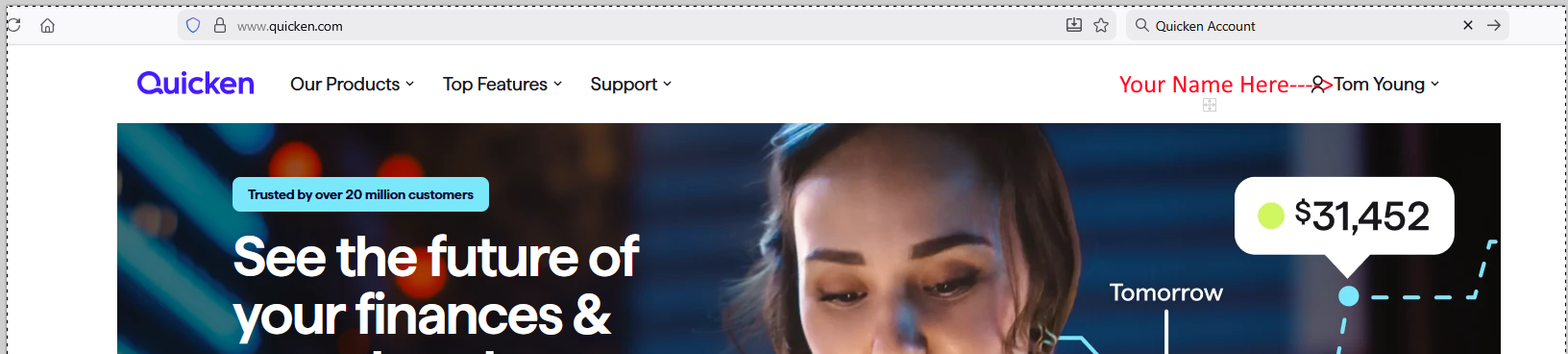 Without some pictures these kinds of conversation can be difficult. "My Quicken Account…" would seem to suggest that you go to your browser, type in "Quicken.com" in the URL line and end up here: