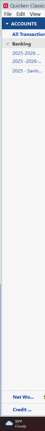 I can also see that you seem to be using a very unconventional nomenclature in your creation of Accounts. "2025-2026…" isn't a real world account in the sense that some financial institution is sending you monthly statements for an account titled "2025-2026…" I'm guessing that the Accounts titled "2025-2026…" might be checking accounts and you also have a savings account?