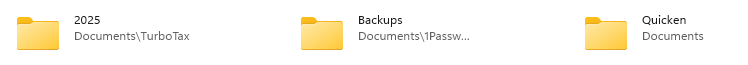The reason for this is to be able to access those folders easily, partly because of using them when doing my taxes. Another is that every time I open a backup, I have to close Quicken so it can be displayed.