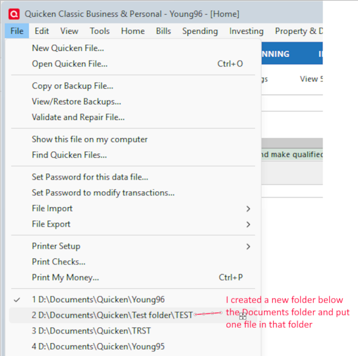 When you open a "new file" are you also creating a new folder to store it in, such that the path to open that file is Documents > Quicken > New Folder > New File, or something?