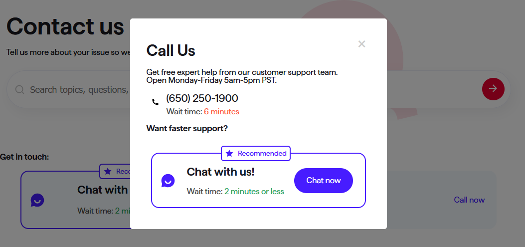 You say to call, but I do not see a phone number. The only way I see is the chat. I am planning to try again tomorrow.