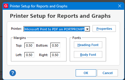Locate, download and install the file QW06R5Patch.exeWhen done, try setting up your printer again: File Menu / Printer Setup / For printing reports