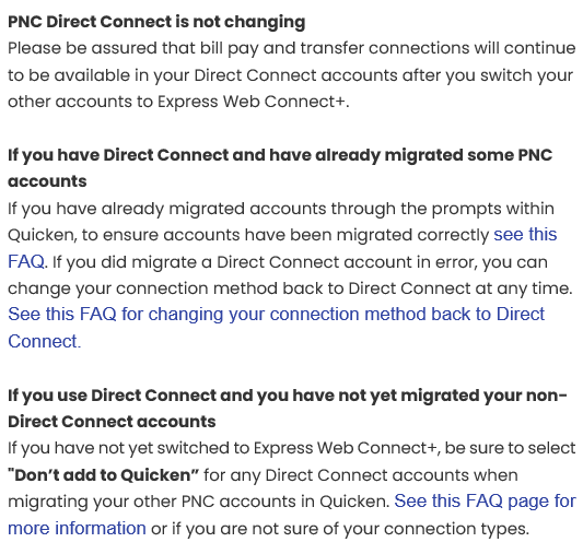 👍 Does PNC still work with Quicken Direct Connect?