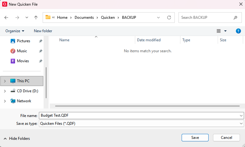 - Go to File > New Quicken File.