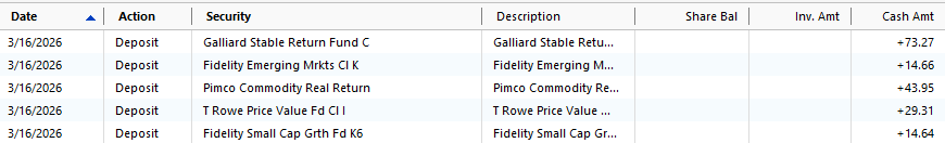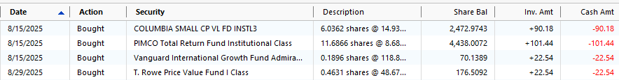 The transactions for purchase of the funds come in like below. No shares, just a cash amt.