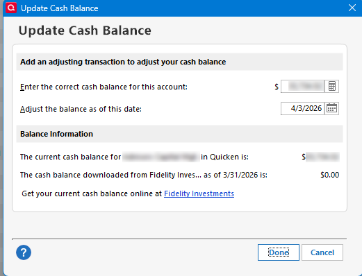 - Adjust how Quicken manages the cash information