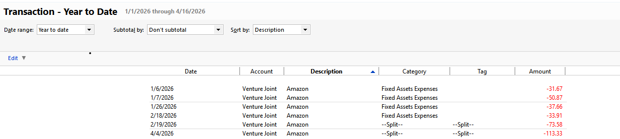 I created new ones recently and then saved them. Transaction reports for with custom date 1/12025 thru 12/31/2025. I selected specific categories > Restaurant for one and Grocery for the other. I sorted by payee. I just noticed it in the last few days. I often run transaction reports but did not notice it earlier but it could have been happening. It became evident since the total expense for payees with split transaction were too high.