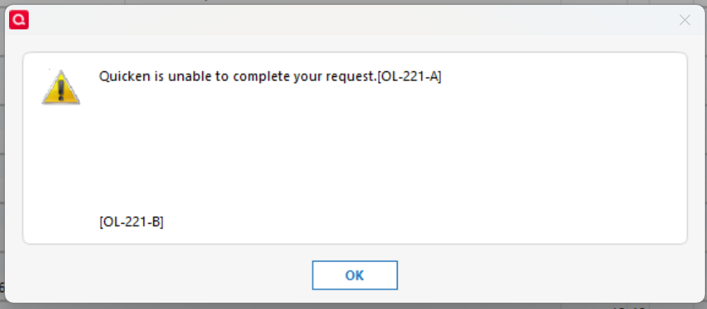 I'm having a similar problem yesterday and today. When I do an update I do not get an error message but am told there are zero transactions downloaded. If I export a file from the Barclays website and attempt to import it into Quicken I am told Quicken is unable to complete my request and I get error codes OL-221-A and OL-221-B.