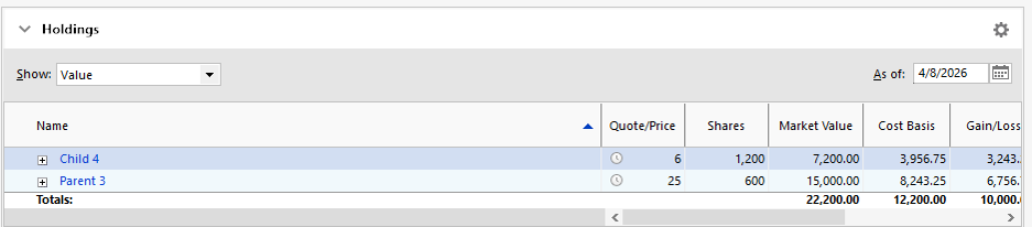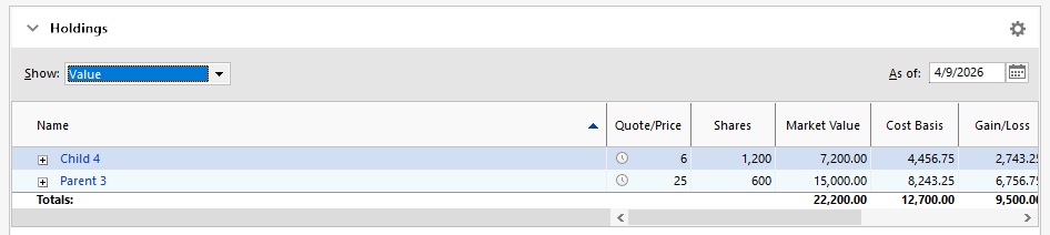 You can see that yesterday the stock Child 4 had a basis of $3,953.75.