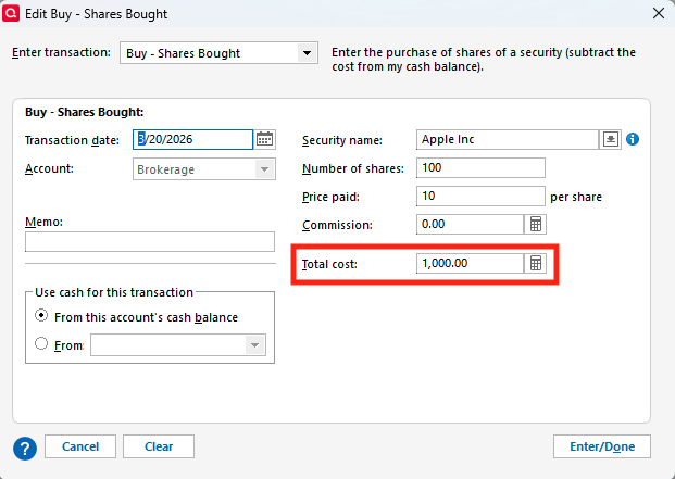 Currently, there isn’t an option to directly change or adjust the average cost basis. Instead, you’ll need to update the underlying investment transactions so Quicken can recalculate the cost basis correctly.