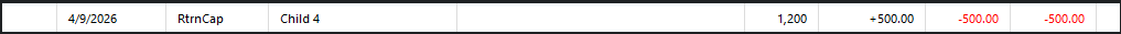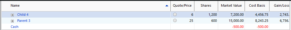 The basis of Child 4 has been increased by $500, and the Account is showing negative cash of $500.