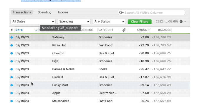 - Has the sort order been changed in your account register? Confirm that the Sort Order in your account register is by Date. If it is not, click on the top of the Date column in your account register. Your missing transactions could be in your register, just not where you thought they would be.