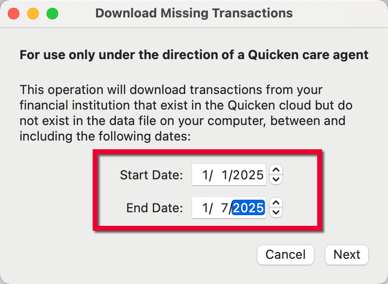 Quicken Classic 8.5.1 and 8.5.2 Transactions NOT downloading MacOS 26.5
