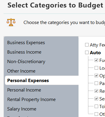That "Auto" was for Automobile categories but selecting it didn't do anything different, still no personal Expenses get shown.