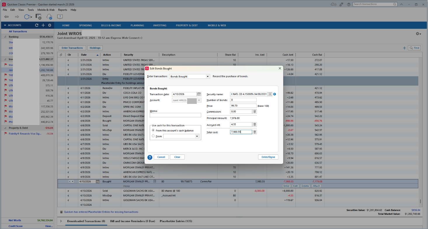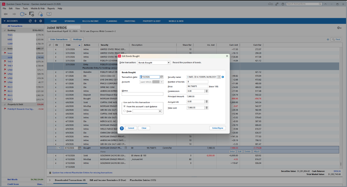 Download to Quicken shows TOTAL transaction price as the purchase price