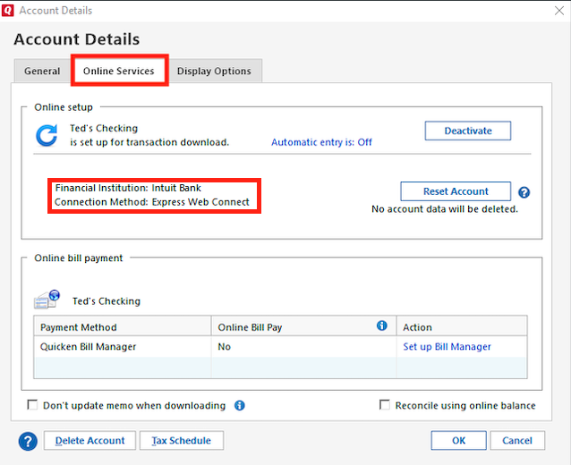 When you have a moment, could you please confirm which connection method you’re using: Direct Connect or Express Web Connect/Quicken Connect? This will help us better understand the issue and guide the next steps.
