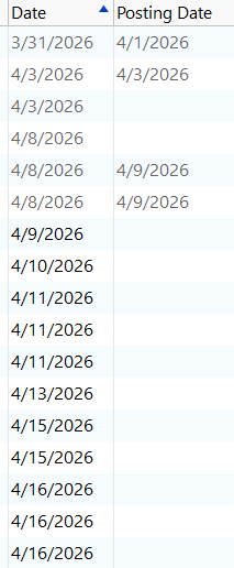 I did see some pending transactions today. I had already entered the older ones manually. Hopefully I'll see cleared transactions soon