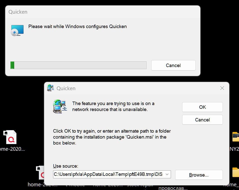 Because the path you're showing in the 2nd graphic doesn't look anything like where a QFX would be saved … it looks more like the path to a program install file (but I can't be sure since you don't show the full file name).