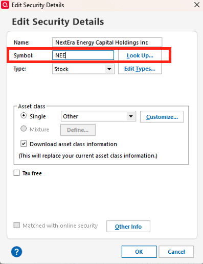 • Right-click the security and select Edit, then modify the ticker symbol as needed